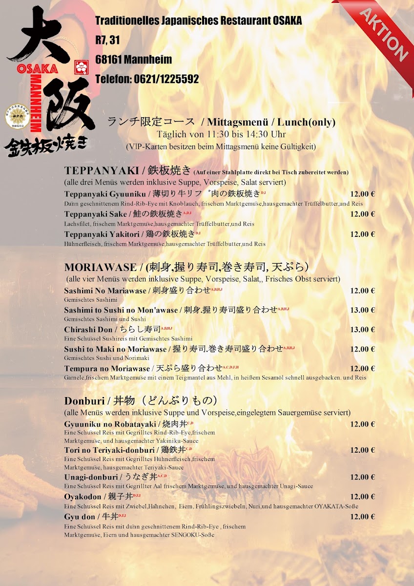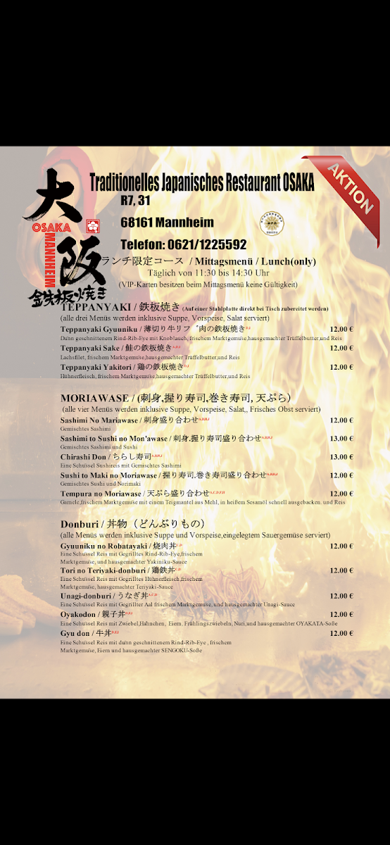 Welcome to Traditionelles Japanisches Restaurant OSAKA, an exquisite dining destination in Mannheim, Germany, dedicated to authentic Japanese cuisine. The menu features an array of captivating dishes, focusing on teppanyaki and hibachi, where culinary artistry comes to life right before your eyes. Guests can indulge in meticulously prepared set menus that showcase prime cuts of meat and succulent seafood, including lobster and scallops.